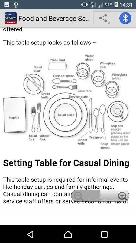 Food and Beverage Services is related to all the activities pertaining to preparing for service and serving food and beverages. This tutorial introduces you to various types of services, table settings, various equipment used in service, types of menus, types of service operations, food garnishes and accompaniments, and various standard operating procedures followed by food and beverage service business.