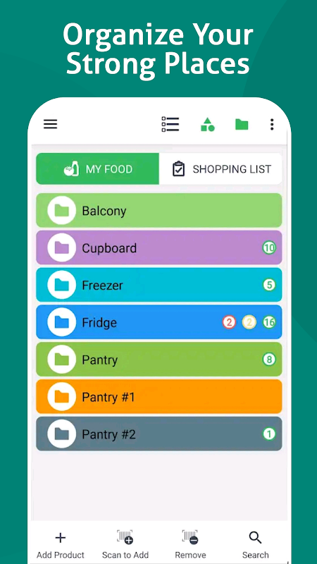 - भंडारण स्थान बनाएं (पदानुक्रमित हो सकते हैं) और जानें कि आपका भोजन कहां संग्रहीत है;