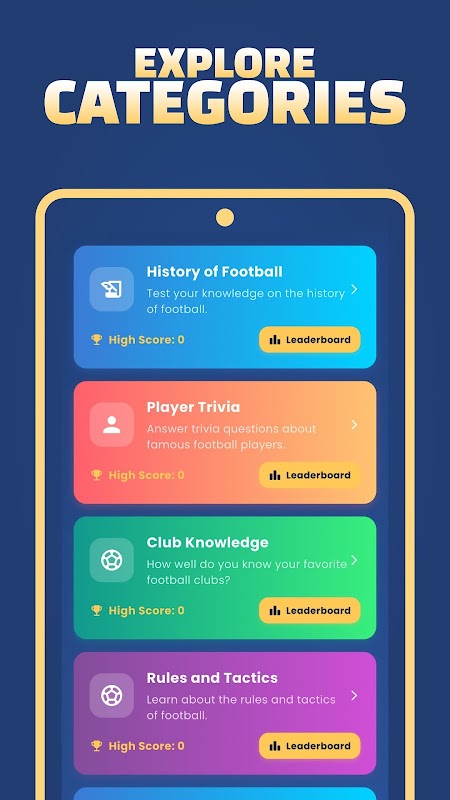 क्या आप फ़ुटबॉल में महारत हासिल करना चाहते हैं? फ़ुटी मास्टर आपके लिए एकदम सही गेम है! यह आपको मज़ेदार क्विज़ के ज़रिए नए कौशल सीखने और फ़ुटबॉल का विशेषज्ञ बनने में मदद करता है।