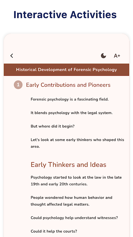 • संरचित सामग्री: फोरेंसिक मनोविज्ञान को चरण-दर-चरण जानें, मुख्य अवधारणाओं से लेकर उन्नत सिद्धांतों तक को कवर करें।