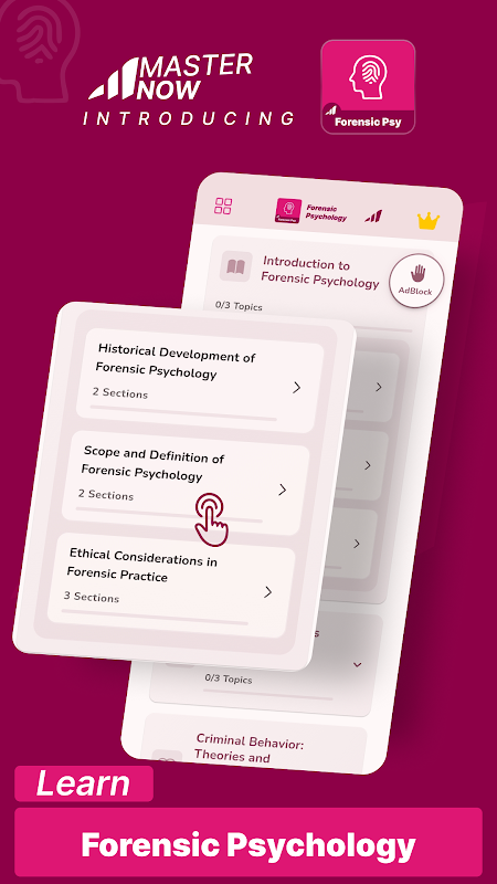 इस ऑल-इन-वन ऐप के साथ आसानी से फोरेंसिक मनोविज्ञान में महारत हासिल करें। आज ही अपनी यात्रा शुरू करें और आपराधिक व्यवहार के पीछे छिपे मन का पता लगाएं।