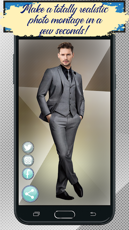 👔 क्या आप पुरुषों के फैशन में रुचि रखते हैं और पुरुषों के लिए औपचारिक सूट पहनना पसंद करते हैं? पुरुषों के लिए औपचारिक सूट - फैशन फोटो एडिटर एप्प की मदद से आप स्टाइलिश पुरुष जैकेट पहन सकते हैं। इस नए पुरुषों के फैशन संपादक की मदद से औपचारिक सूट और फैशनेबल पुरुषों के कपड़े पहनें! अपने औपचारिक पुरुषों के फोटो सूट या आकस्मिक पुरुषों के सूट के फोटो बनाएं। हमारे पुरुषों फोटो सूट ऐप के साथ नवीनतम पुरुषों के कपड़ों के रुझानों का पालन करें और औपचारिक पहनने में फैशनेबल फोटो मॉन्टेज बनाएं। स्मार्ट पुरुषों के सूट आपको अच्छे दिख सकते हैं और यदि आप चाहते हैं कि पुरुषों के लिए सबसे अच्छी शैली हो तो लड़कों और पुरुषों के लिए हमारे ड्रेस अप खेल का उपयोग करें अपनी एक पुरानी तस्वीर का उपयोग करें या अपने सेल्फी कैमरे के साथ एक नई तस्वीर लें! चित्रों को संपादित करने और फोटो प्रभाव के साथ एक सुंदर फोटो बनाने के लिए हमारे सबसे अच्छे पुरुषों के फोटो संपादक का उपयोग करें। एक बार जब आप महंगे सूट में अपना परफेक्ट लुक देते हैं तो इसे फेसबुक या इंस्टाग्राम पर शेयर करते हैं।