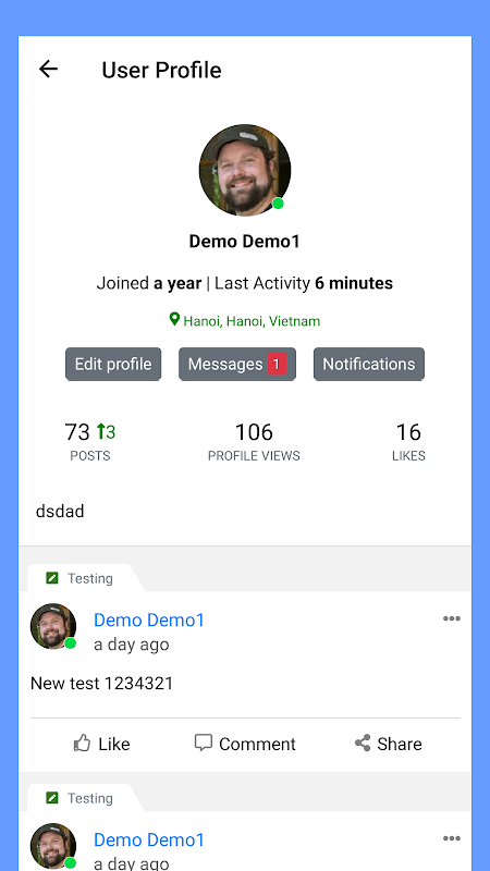 - उत्तर पोस्ट/टिप्पणियां- उपयोगकर्ता प्रोफाइल
