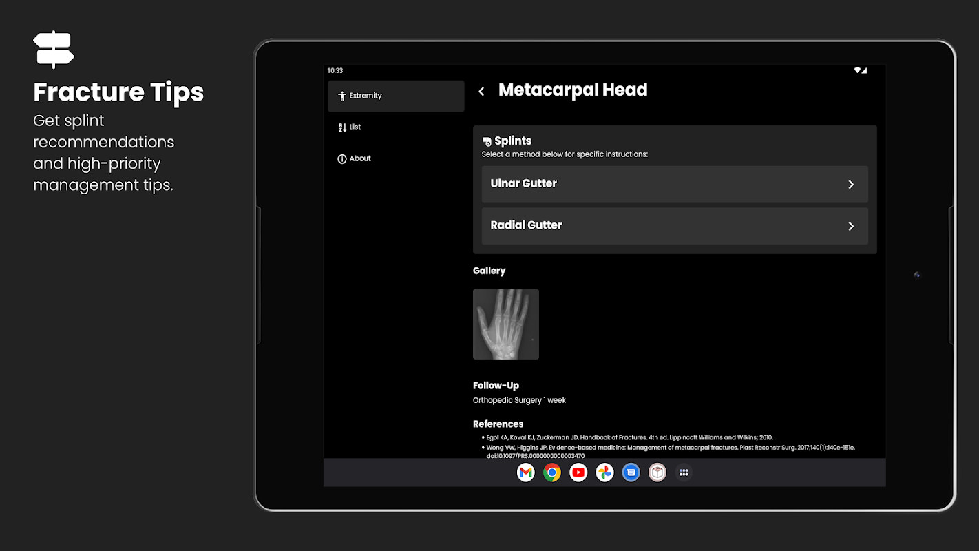 फ्रैक्चर और स्प्लिंटिंग के लिए उपयोग में आसान बेडसाइड ऐप।