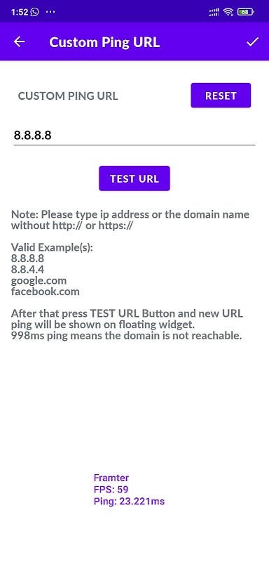 आप अपने उत्पादकता कार्य के लिए भी इस एप्लिकेशन का उपयोग कर सकते हैं क्योंकि आप पिंग URL को अपनी विशिष्ट वेबसाइट / आईपी पते पर कस्टमाइज़ कर सकते हैं।
