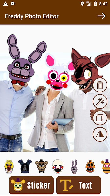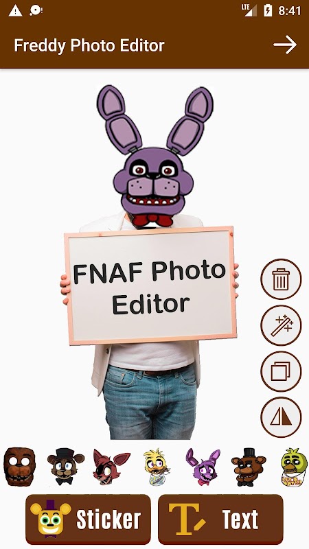 Photo Face Editor with Freddy sticker and make it change world in FNAF World FNAF characters such as Freddy Fazbear, Bonnie, Chica, Foxy, Golden Freddy, Mangle.