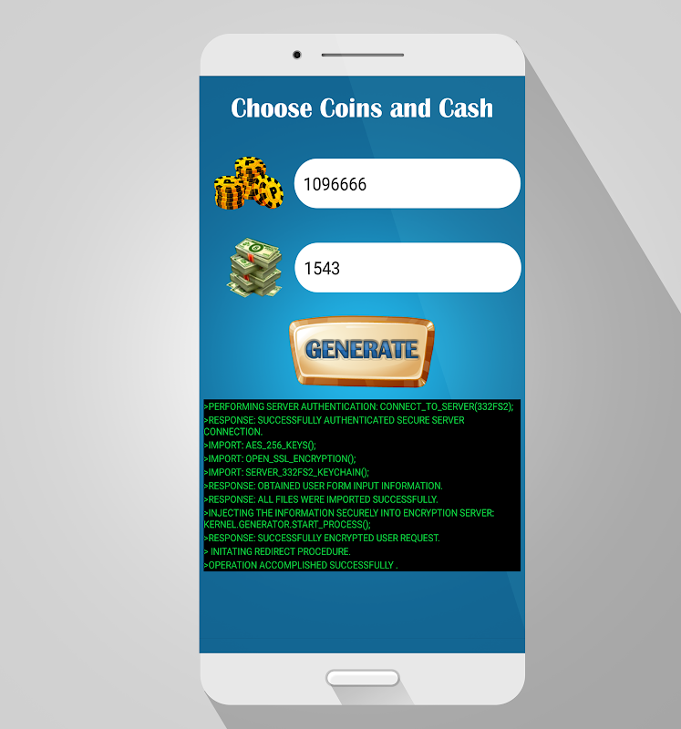 after enter the coins and cash that you want to win and click Generate complete all step and wait while the operation ends.