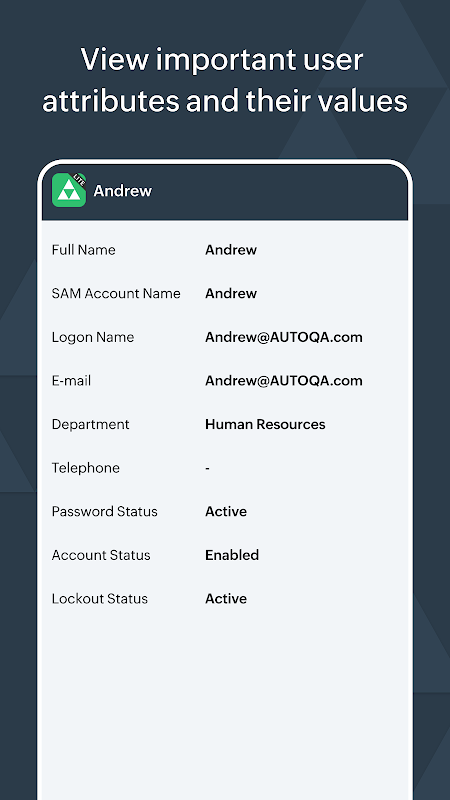 सक्रिय निर्देशिका प्रबंधक लाइट ऐप आपको केवल अपने मोबाइल उपकरणों का उपयोग करके, अपनी सक्रिय निर्देशिका में उपयोगकर्ता खातों को प्रबंधित करने की अनुमति देता है। इस ऐप के साथ, ऐसा लगता है मानो आप जहां भी जाएं, अपनी सक्रिय निर्देशिका अपने साथ ले जा रहे हैं। अब आप अपने मोबाइल उपकरणों के माध्यम से अपने उपयोगकर्ताओं को किसी भी समय और दुनिया में कहीं से भी आसानी से प्रबंधित कर सकते हैं।