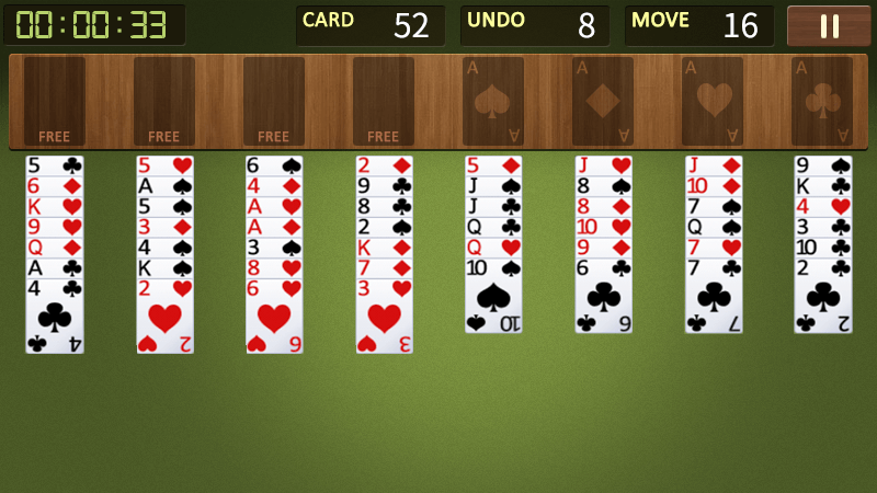 चरण मोड और क्लासिक मोड के साथ फ्रीसेल खेल