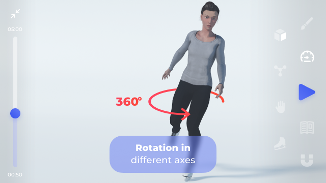 दर्जी 3 डी तकनीक आपको फिगर स्केटिंग जंप का अध्ययन करने और अपने आइस-स्केटिंग चाल को सही करने में मदद करती है। कंकाल का दृश्य शरीर के आंदोलनों की शारीरिक रचना को प्रदर्शित करता है, जिससे आप फिगर स्केटिंग जंप के बायोमैकेनिक्स को समझ सकते हैं।