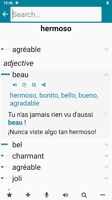एक त्वरित फ़्रेंच स्पैनिश ऑफ़लाइन शब्दकोश, वैकल्पिक अनुवाद, अक्सर उपयोग किए जाने वाले स्पैनिश वाक्य, परीक्षण (लिखना, सुनना, बोलना) और खेल...