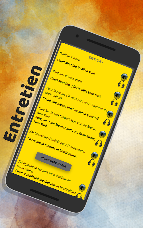 * Every French to English learning chapter is sufficiently provided with quality information to ensure that your speaking fluency gets further enhanced. Learn English in French language. This is not a french to english translator app but an English language trainer.