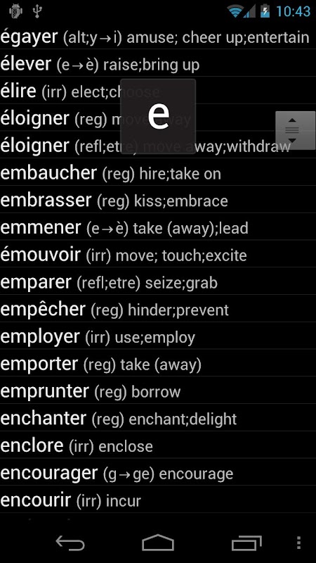 ब्राउज़ करें और सबसे आम फ्रेंच verbs के conjugations खोज