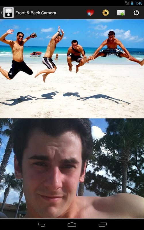 By using sequentially both the front and back cameras from your phone, this application will turn your phone into an amazing camera, allowing you to appear in the photo you are taking! Both pictures will be combined to produce an awesome image that will capture the pic and photographer in the same frame.