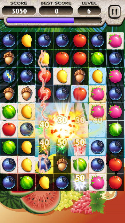 - Match the Fruit until the board transparency,the Fruit will appear.