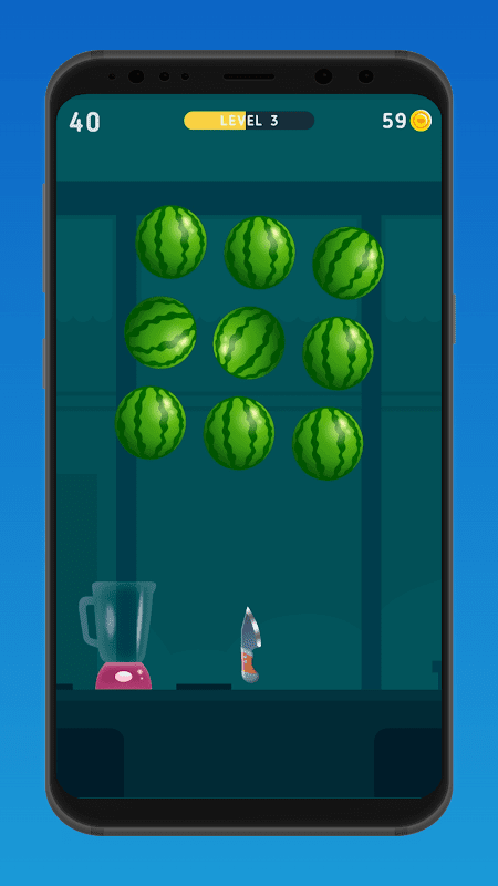 Throw your weapons at the fruit as you try to juice them all to complete each level. Try not to miss any of the fruits as you juice them and earn coins. try to complete all 100 different levels. Once you miss any fruits your high score will be submitted to the leaderboards.