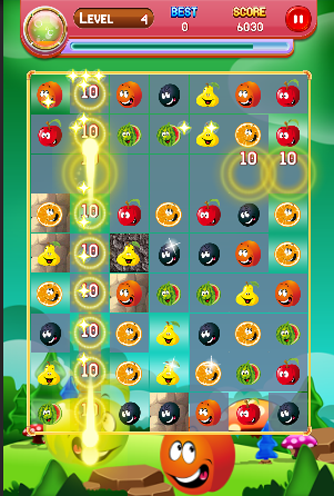 - Swipe three or more same Fruit to score points.