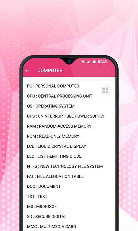 This app contains more than 50,000 full and short forms from every branch with hourly updates of new words. You can find all full forms categories wise also. It is very helpful in competitive Exams preparations, No need to go on Google for searching full forms of abbreviations and acronyms. You can get all full forms in your pocket.