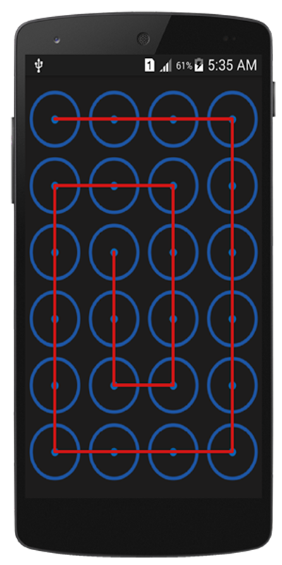 Ever wondered 3x3 pattern lock was too short for creative patterns inside your mind. You wanted a more secure pattern lock. No need to wait here it is Full Screen pattern lock Lock screen App. Which gives you 6x4 pattern dots. You can be creative as you want with this full screen pattern lock lock screen app.