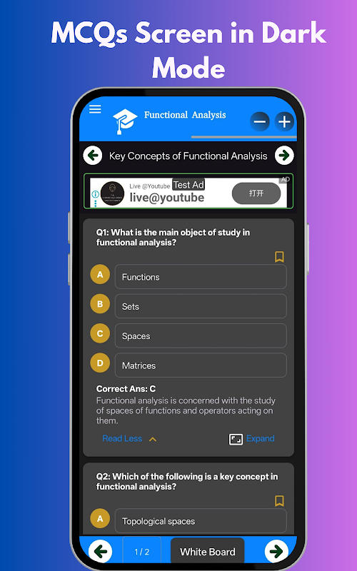 अभ्यास करते हैं, और चरण-दर-चरण अवधारणाओं में महारत हासिल करते हैं। मीट्रिक स्पेस से लेकर हिल्बर्ट स्पेस तक, सीखने की यात्रा सहज, इंटरैक्टिव और उत्पादक बन जाती है।