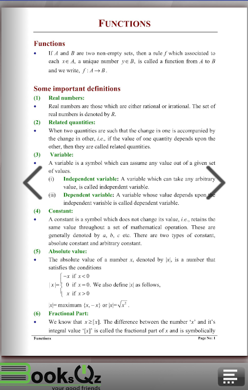 Maths (AIEEE, IIT-JEE Main) Functions Interactive e-Book Education application