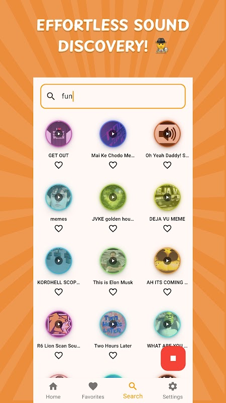 किसी भी ध्वनि को पसंदीदा करने के लिए दिल को टैप करें। उन तक कभी भी पहुंचें - ऑफ़लाइन भी! आपकी अपनी वैयक्तिकृत मेम मशीन।