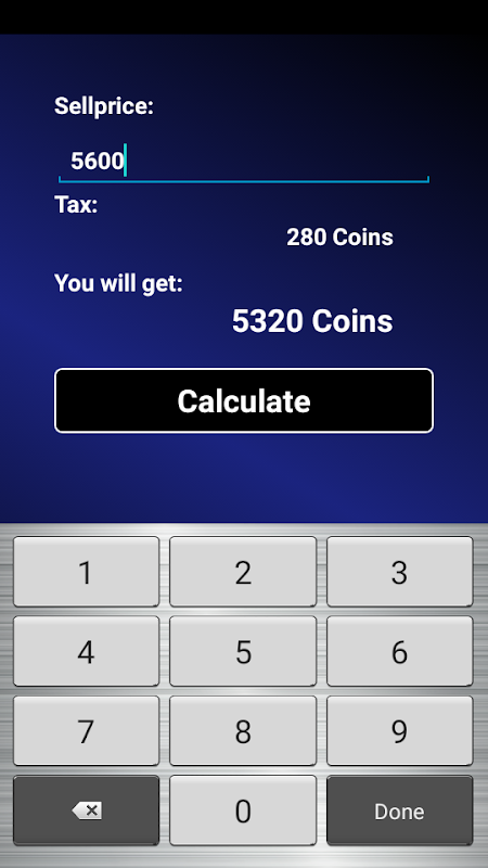 To make trading on ultimate team more enjoyable, this app has an taxation calculator included, just type in the price you want to sell the player for and the app will show you your revenue on your player.