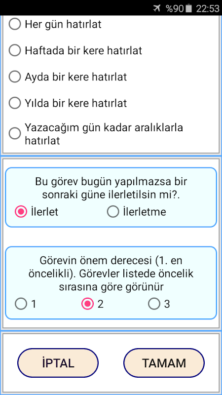 • नोट विकल्प की गंभीरता में, आप उन कार्यों की सूची में जगह निर्धारित कर सकते हैं जो मैं आज आपके द्वारा दर्ज की गई गंभीरता के अनुसार करूंगा। यदि 1 का चयन किया जाता है, तो नोट सामने की तरफ दिखाई देता है, और यदि 3 का चयन किया जाता है, तो अंत में।