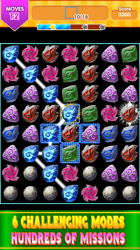 CHALLENGING games TARGETS: take down the shields, earn stars, collect required gems, clean blocks, destroy bombs...