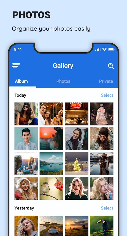 Gallery is a highly customizable photo gallery and file organizer app loved by millions of people all around the world for its great intuitive user experience. Use the photo gallery to edit photos, protect and hide photos, create a secret photo album and easily crop pictures & view a huge variety of different pictures and video formats including RAW, SVG, GIF, panoramic, and much more. Download this non-invasive photo gallery and manage your albums the way you want them to be managed!