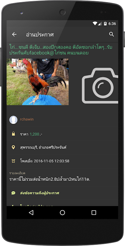 आसान और तेजी से तस्वीर चिकन की बिक्री अभी तक पोस्ट के लिए एंड्रॉयड सिस्टम पर मुक्त करने के लिए ऑनलाइन लड़ाई - Gamecocks एप्लिकेशन बाजार पद के लिए आवेदन पत्र है। एक सटीक खोज प्रणाली घोषणा करने के लिए एक ईमेल भेजता है। विक्रेता के लिए संदेश और कॉल तुरंत विज्ञापित दबाएँ। Gamecocks स्पष्ट रूप से वर्गीकृत श्रेणियों को ब्राउज़ के रूप में की जरूरत है। मंझला प्रांतीय और जिला / काउंटी के रूप में आप की तरह ब्राउज़ प्रांत घोषित कर दिया।