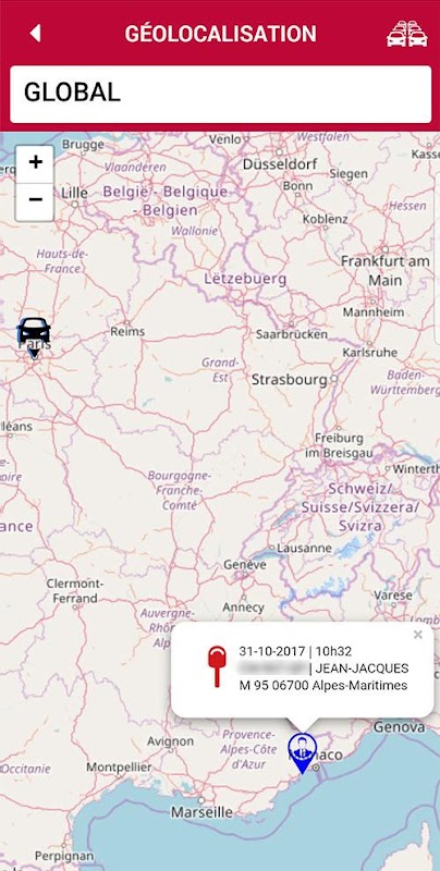• Localisation : localisez vos véhicules et soyez informé de leur statut (à l’arrêt, en mouvement, vitesse, cap….)