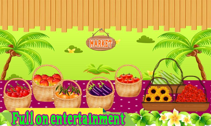 - सुपर स्टोर से बास्केट में फलों और सब्जियों को फेंकना