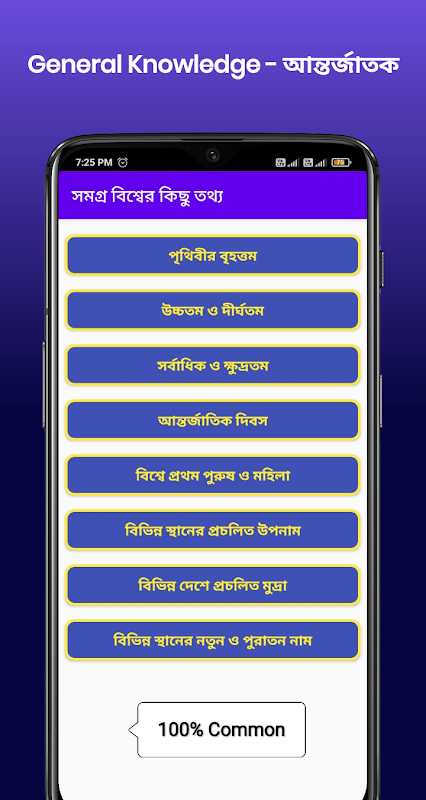 इस ऐप में बहुत सारे सामान्य ज्ञान बांग्ला एमसीक्यू और जानकारी है, जो अक्सर परीक्षा में देखी जाती है।