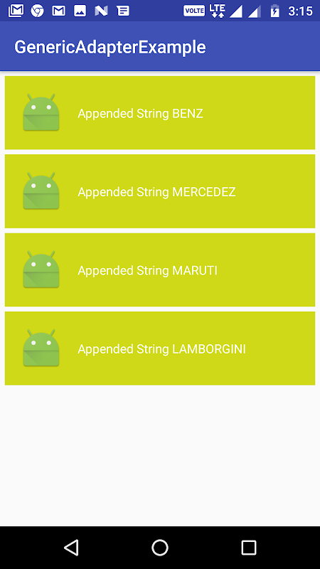 contains examples of using generic adapter , using generic adapter library https://github.com/mohanmanu484/Generic-Adapter