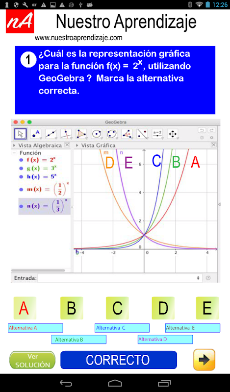 "ग्राफिक घातीय कार्यों के लिए जियोजेब्रा उपकरण" इस आवेदन में निहित अपने समाधान के साथ 5 यादृच्छिक सवाल है।