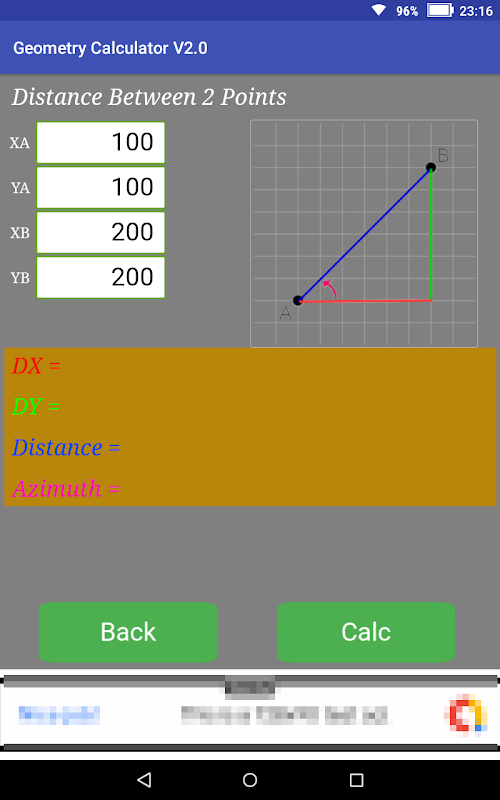 Geometry Calculator, calculates some problems of plane geometry. For school or Engineering.