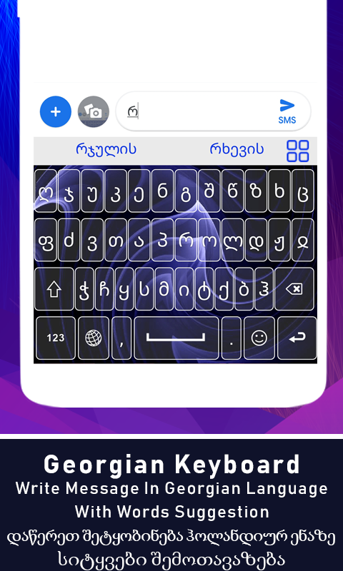 If you want to customize your keyboard with emotions, high contrast layout, then congratulations, you are in the right place; We are here to provide you with a Georgian typing keyboard with switch Georgian to English. Easy typing of Georgian language and blue themes is the English Georgian keyboard. Switch English to Georgian Keyboard is a multilingual keyboard in the search store. Multi language keyboard has advanced features such as auto-correction and next word suggestions.