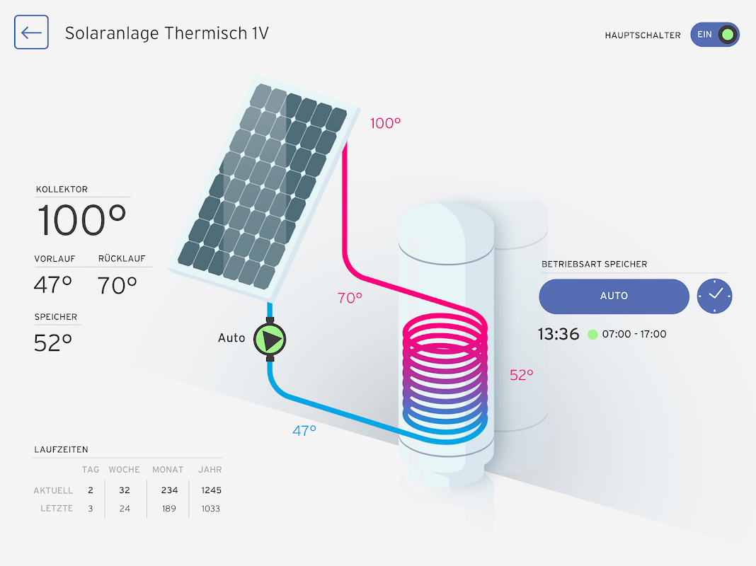 Mit der GEOSOL-CONTROL können Sie Ihre Regelung mit dem Smartphone und Tablet von überall auf der Welt steuern.