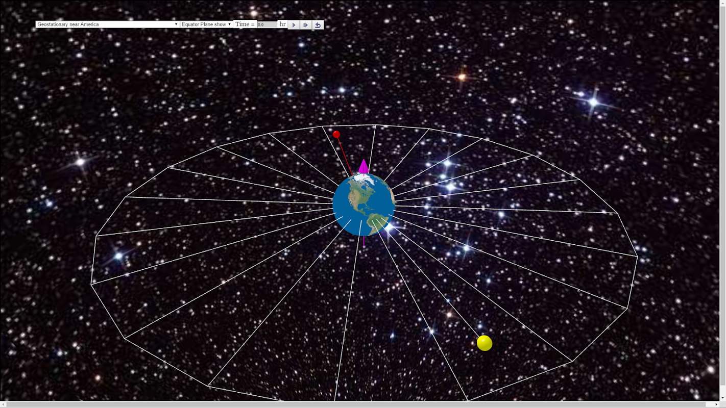 सिमुलेशन एक पृथ्वी की है और एक सैटेलाइट वस्तु मेनू ड्रॉप डाउन का चयन क्या उपग्रह की गति नकली है के लिए अनुमति देता है।