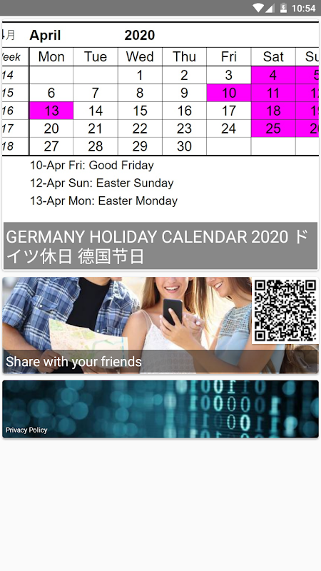 GERMANY HOLIDAY CALENDAR 2020 ドイツ休日 德国节日 APK जानकारी