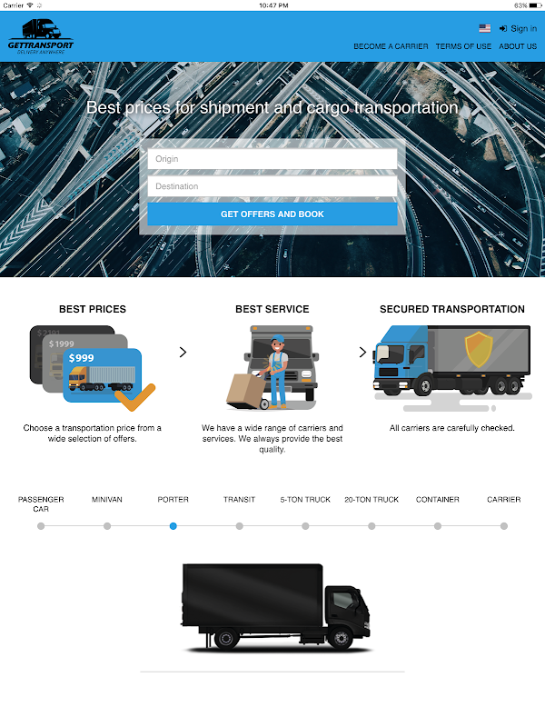 GetTransport is a service for finding carriers for cargo transportation at the best rate.