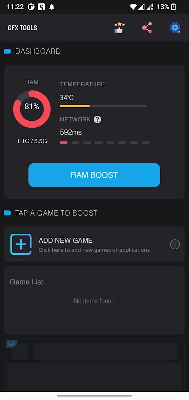 यह एक गेम बूस्टर ऐप है: आप राम को बूस्ट करके बिना लैगिंग के तेजी से गेम खेल सकते हैं। एक बार राम ने बूस्ट किया तो आप गेम को तेजी से खेल सकते हैं