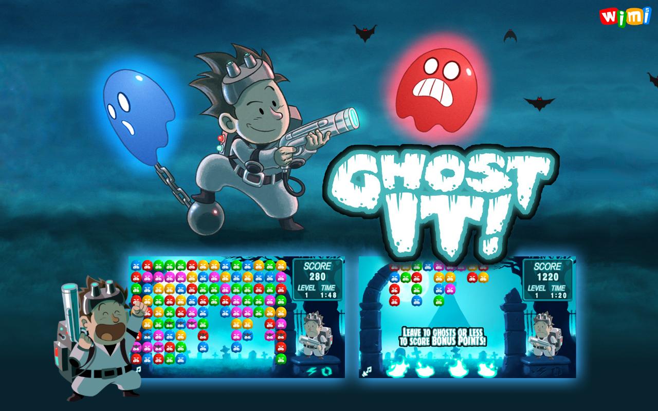 To play: Pop groups of 2 or more ghosts of the same color. The more ghosts in the group, the more points you score.