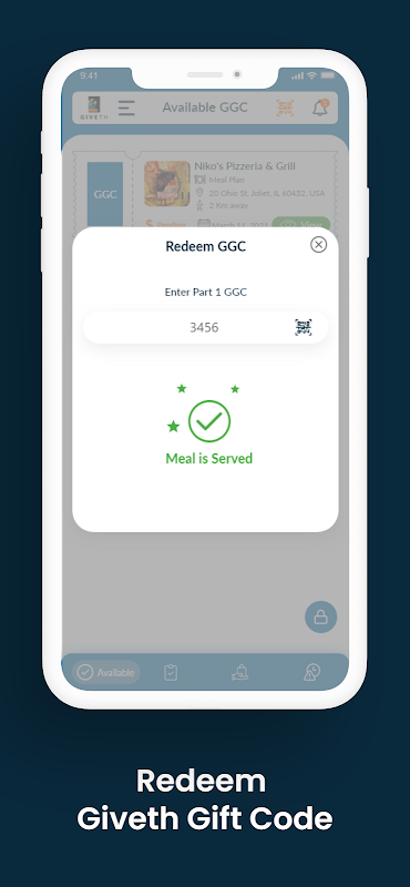 स्वयं भोजन का दावा करना चाहते हैं? यह देखने के लिए कि क्या आपके आस-पास लावारिस भोजन है या नहीं, 'भोजन खोजें' सुविधा के साथ अपने क्षेत्र में उपलब्ध गिवथ गिफ्ट कोड (जीजीसी) देखें। सूचीबद्ध रेस्तरां में जाने से पहले किसी भी उपलब्ध जीजीसी को अपने गिवथ वॉलेट में जोड़कर दावा करें और उन्हें अपना मुफ्त भोजन रिडीम करने के लिए अपना जीजीसी दिखाएं। यह इत्ना आसान है!