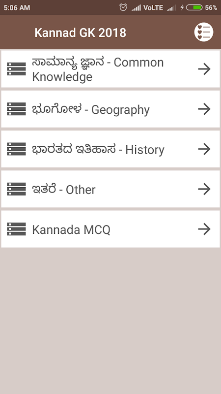 Offline General Knowledge (GK) in Kannada Language -- like History, Geography, Indian Polity, Indian Economy, General Science ,Indian Constitution,Industries,Awards & Rewards,Books and Authors,Arts and culture,Languages,Sports,Defense,Film Industry,Rivers and Lakes,Mountains and Forest,National Park,Education and Sociology etc.