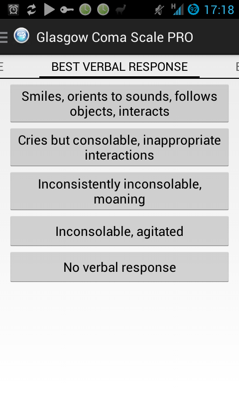 3 क्लिक में पैमाने ग्लासगो कोमा पर चेतना के स्तर का आकलन. अधिक pediatrics.Nothing में उपयोग के लिए पैमाने के उपलब्ध संस्करण!
