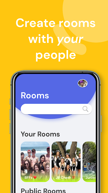 • एक कमरा बनाएं (या शामिल हों) - सभी को एक जगह एक साथ लाएं।