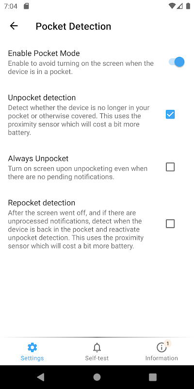 • अपनी जेब में स्क्रीन को चालू करने से रोकने के लिए व्यापक पॉकेट मोड