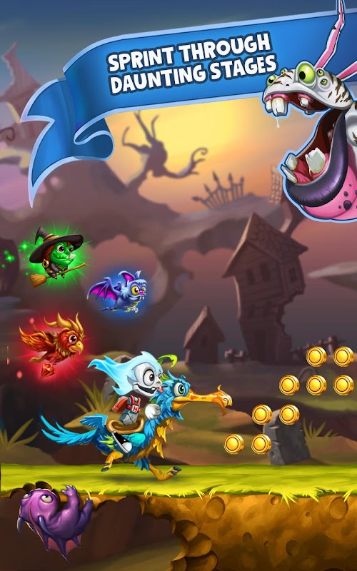 - Lively Levels: Run through shaky villages, daunting caves, and dark forests collecting coins and completing missions